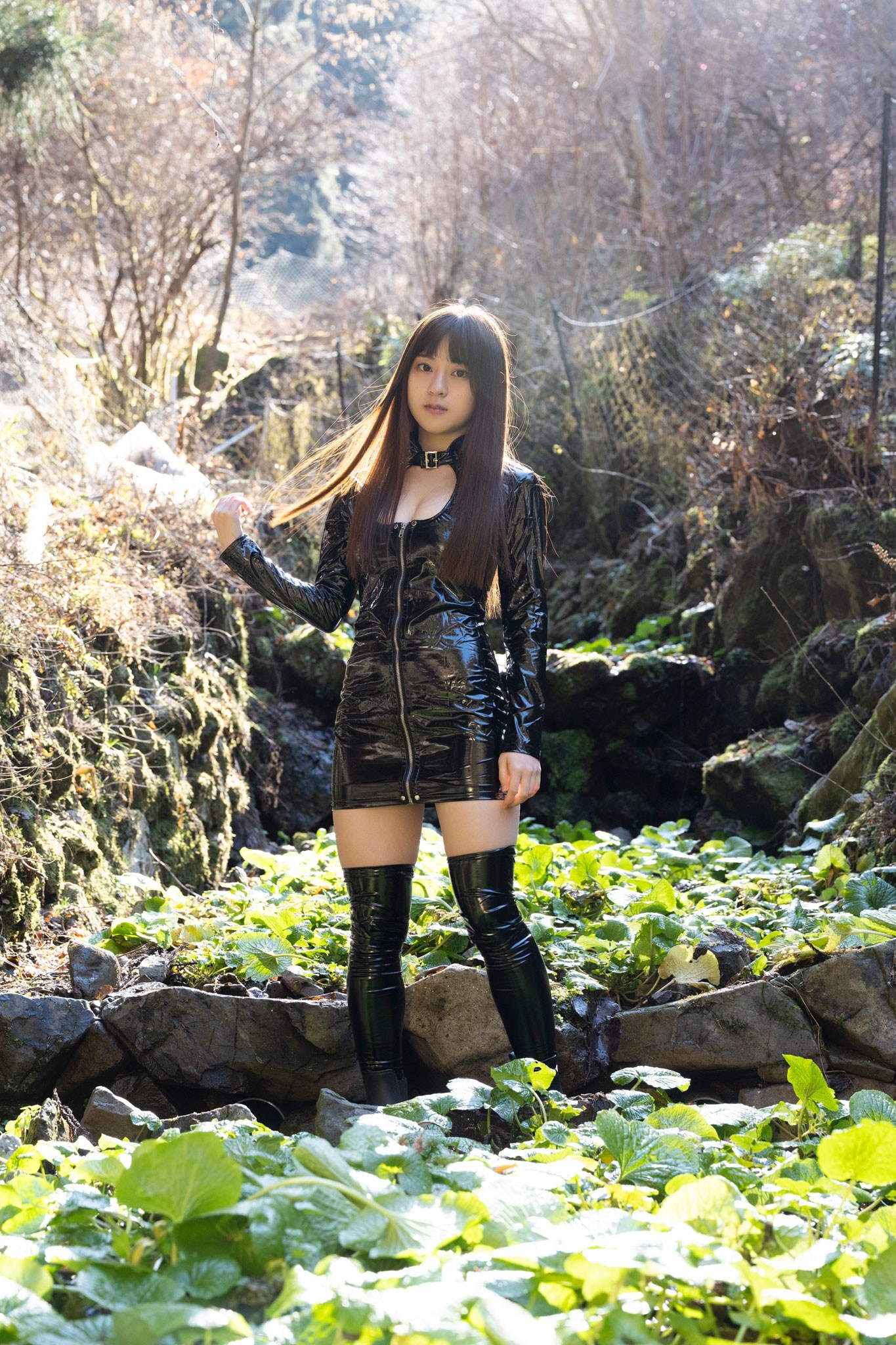 「激辛つめあわせな女」というテーマで、黒のレザーボンデージを着こなす。わさび畑を舞台に新しいグラビアを展開。カラダの芯が熱くなる珠玉のカットをぜひ!!