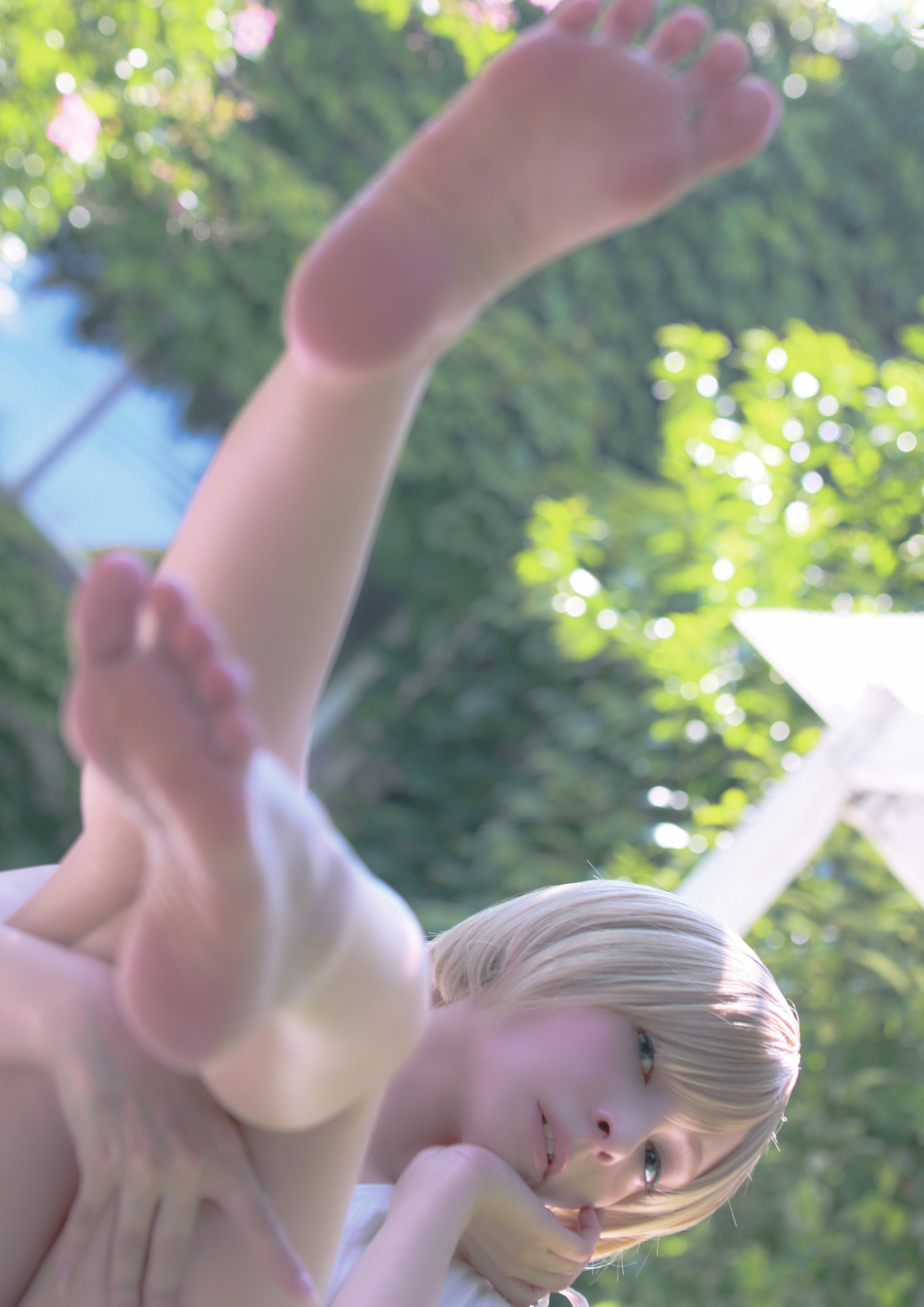 真っ白なワンピースに身を包んだ美女は天使か、小悪魔か。わき、足裏といった乙女の秘部に密着した完全特化の異色グラビア。